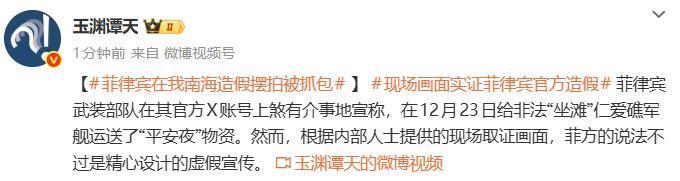 据玉渊谭天,菲律宾武装部队在其官方X账号上煞有介事地宣称,在12月23日给非法“坐滩”仁爱礁军舰运送了“平安夜”物资。然而,根据内部人士提供的现场取证画面,菲方的说法不过是精心设计的虚假宣传。